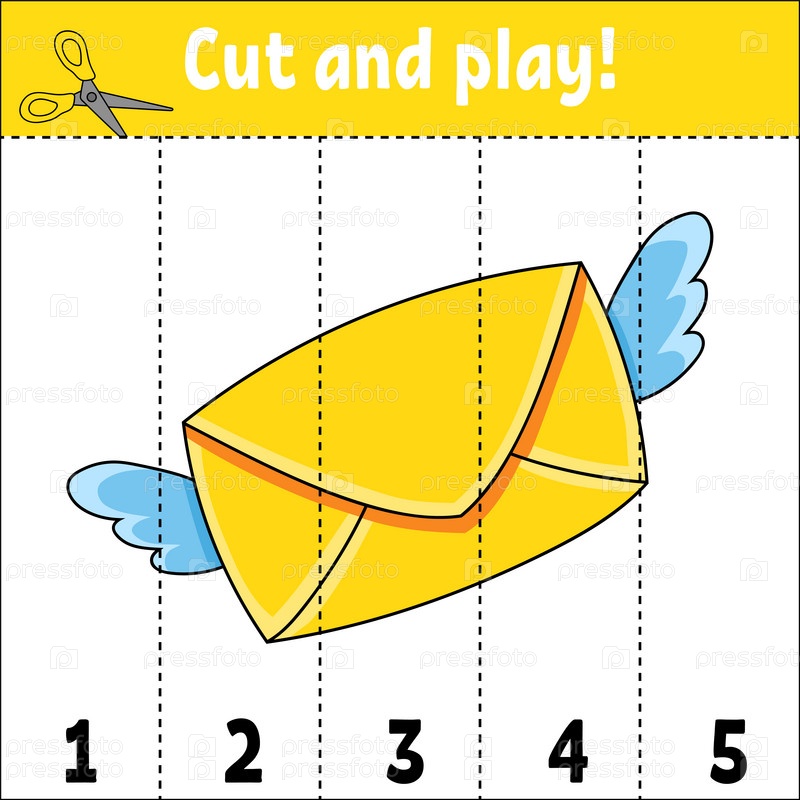 Изучаем цифры от 1 до 5. Разрезаем и играем. Рабочий лист по образованию. Игра для детей. Страница с цветной активностью. Головоломка для детей. Загадка для дошкольников. Векторная иллюстрация. Мультяшный стиль