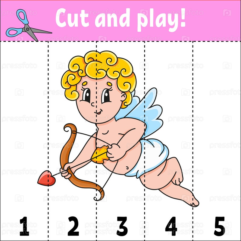 Изучаем цифры от 1 до 5. Разрезаем и играем. Рабочий лист по образованию. Игра для детей. Страница с цветной активностью. Головоломка для детей. Загадка для дошкольников. Векторная иллюстрация. Мультяшный стиль