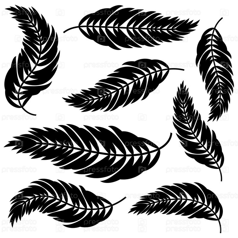 Набор плоских абстрактных изолированных черных листьев, изгибающихся в разных направлениях