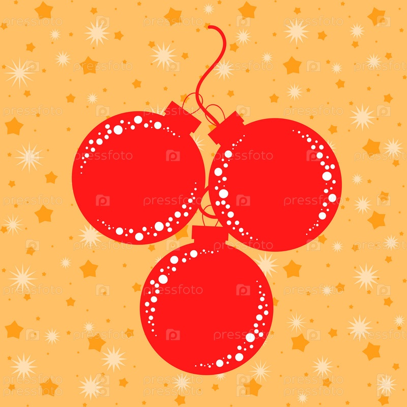 Набор плоских изолированных силуэтов красных елочных игрушек на оранжевом фоне со звездами