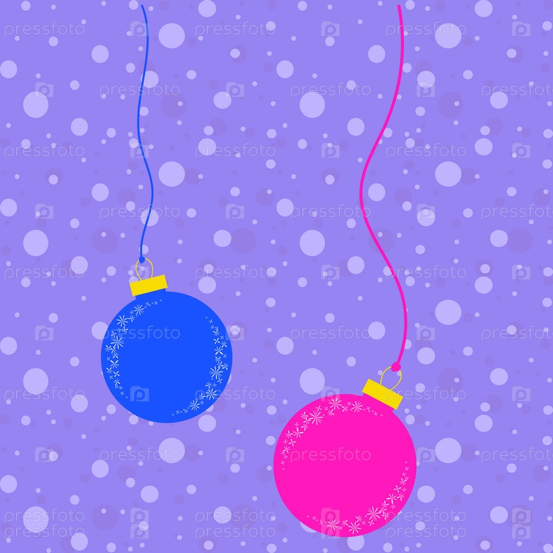 Набор из двух цветных плоских изолированных рождественских шаров, падающих на фоне звездного ночного неба