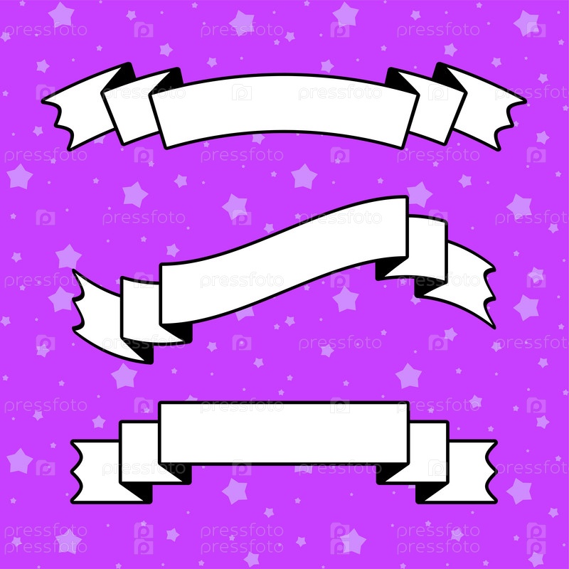 Комплект из белой плоской изолированной баннерной ленты с черным контуром на фиолетовом фоне