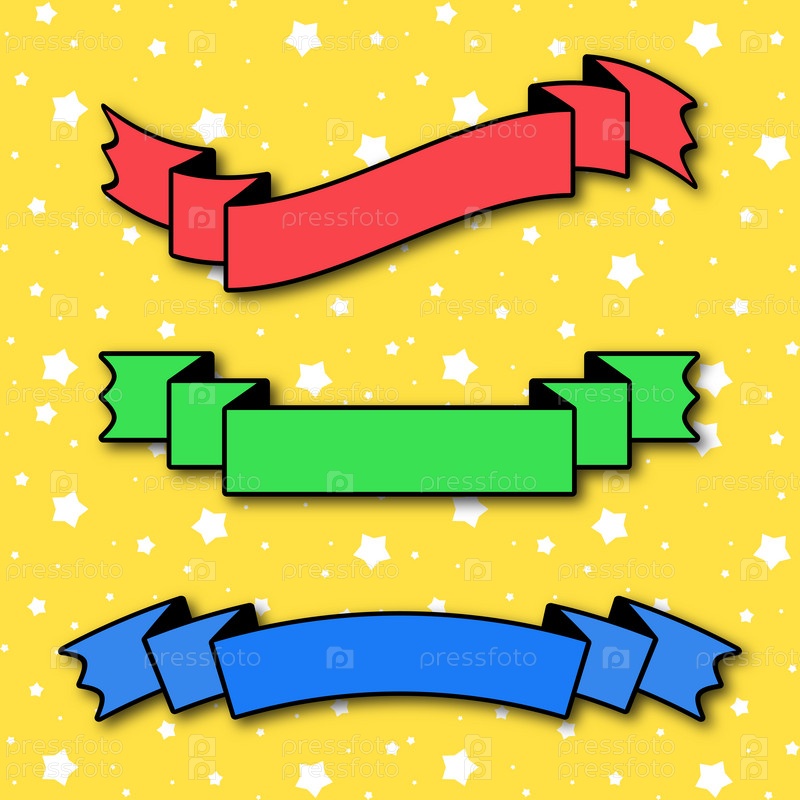 Набор цветных плоских изолированных ленточных баннеров на желтом фоне