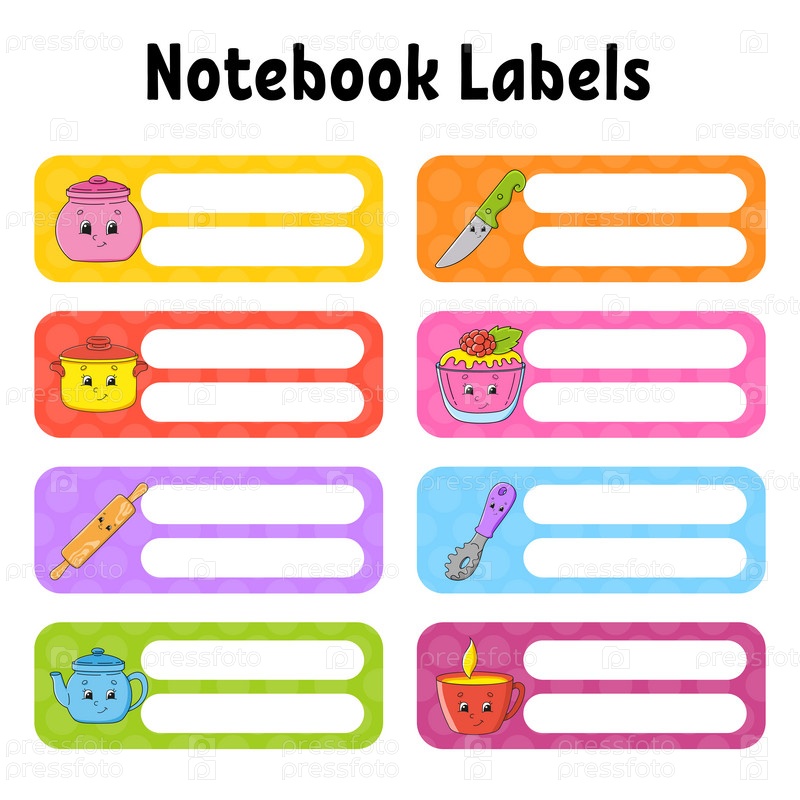 Школьные этикетки для книг и тетрадей. Яркие наклейки. Прямоугольная этикетка. Векторная иллюстрация