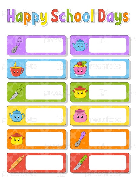 Школьные этикетки для книг и тетрадей. Яркие наклейки. Прямоугольная этикетка. Векторная иллюстрация