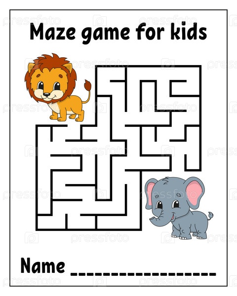 Квадратный лабиринт. Загадка лабиринта. Игра для детей. Головоломка для детей. Персонаж мультфильма. Изолированный на белом фоне. Векторная иллюстрация