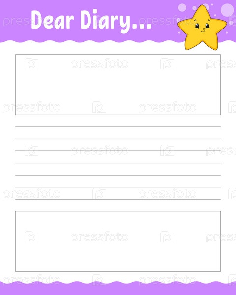 Шаблон линованного листа. Бумага для письма. Для дневника, планировщика, контрольного списка, списка желаний. С милым персонажем. Векторная иллюстрация