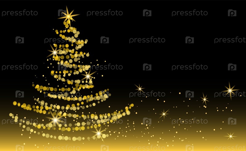 Красиво оформленная рождественская елка из светящихся огней боке на темном градиентном фоне. Векторная иллюстрация