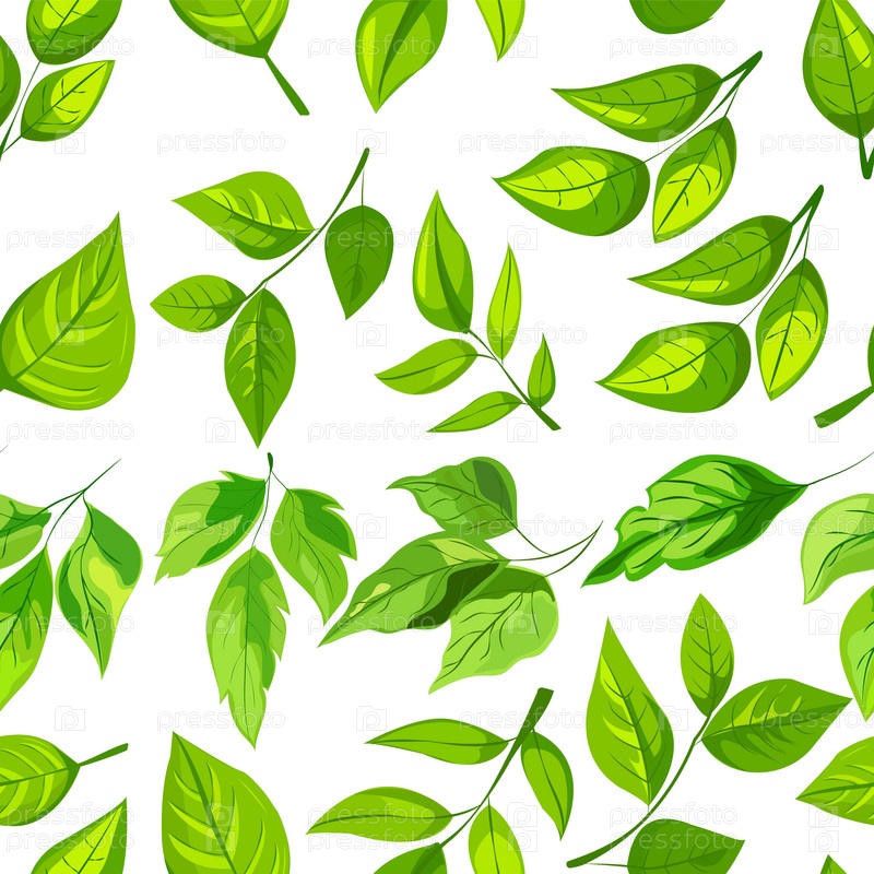 Бесшовный узор с различными оттенками и формами зеленых листьев на белом фоне. Идеально подходит для дизайна на природную тематику, экологичной упаковки и ботанических иллюстраций