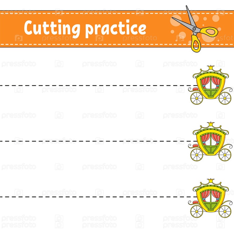 Практика вырезания для детей. Сказочная тема. Образовательный развивающий рабочий лист. Страница с заданиями. Цветная игра для детей. Изолированная векторная иллюстрация. Персонаж мультфильма