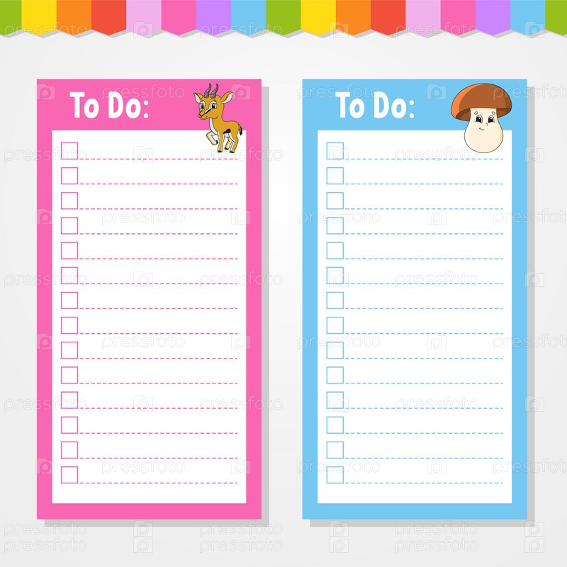 Список дел для детей. Пустой шаблон. Прямоугольная форма. Изолированная цветная векторная иллюстрация. Забавный персонаж. Мультяшный стиль. Для дневника, блокнота, закладки