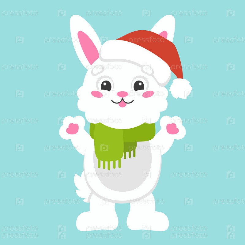 Мультяшный персонаж рождественский кролик. Красочные векторные иллюстрации. Изолированный на цветном фоне. Элемент дизайна. Шаблон для вашего дизайна, книги, наклейки, открытки
