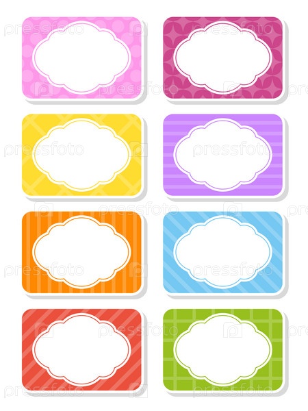 Набор наклеек для дизайна. Пустой шаблон. Бирки, подарочные этикетки. Идеально подходит для папок, ежедневников, блокнотов, ланч-боксов, пеналов. Прямоугольная этикетка. Цветная векторная изолированная иллюстрация