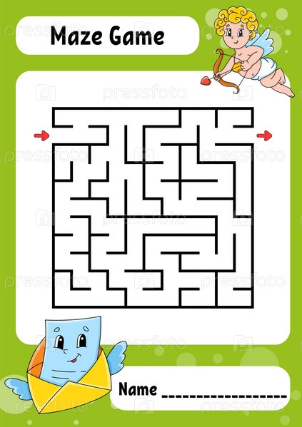 Квадратный лабиринт. Игра для детей. Забавный лабиринт. Образовательный развивающий рабочий лист. Страница с заданиями. Головоломка для детей. День святого Валентина. Загадка для дошкольников. Логическая головоломка. Цветная векторная иллюстрация