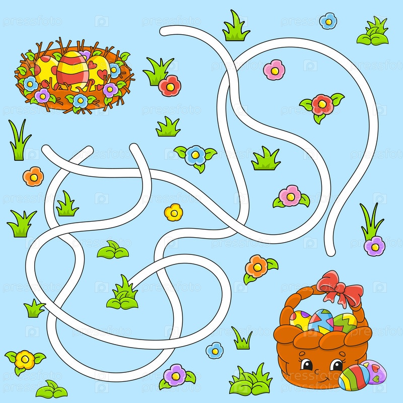 Забавный лабиринт для детей. Головоломка для детей. Персонаж мультфильма. Головоломка лабиринта. Найдите правильный путь. Векторная иллюстрация