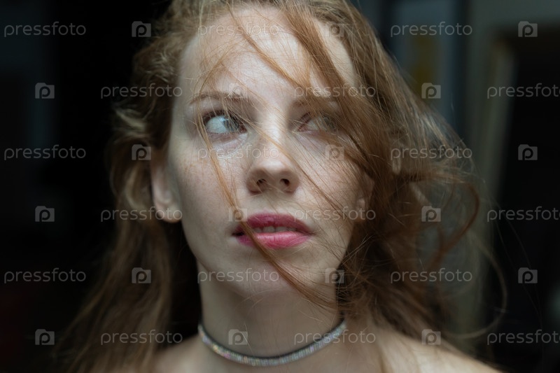 Портрет молодой красивой женщины с распущенными волосами в студии