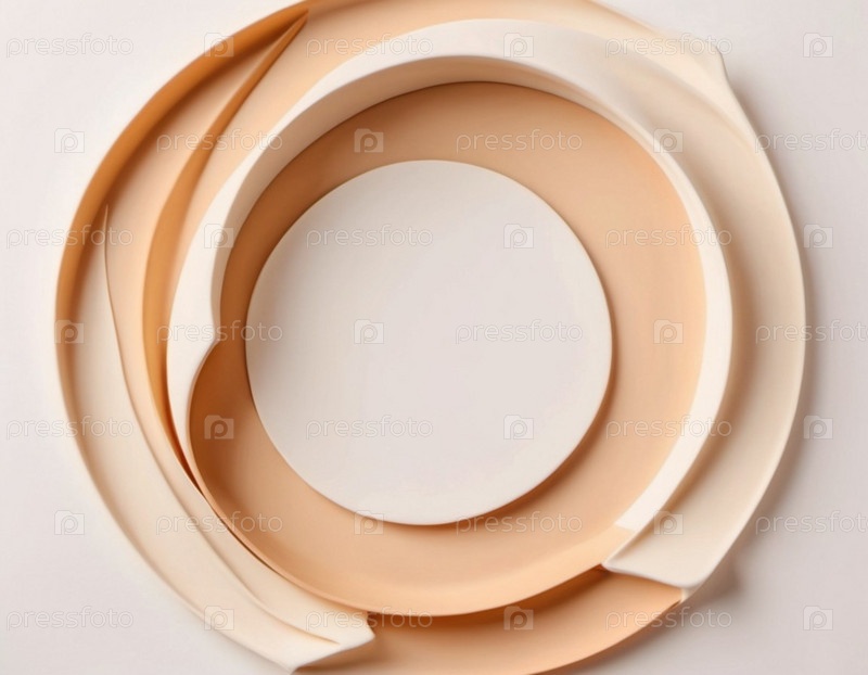Вихрь коричневого и белого крема на бежевом фоне. Крем имеет круглую форму. Пластилин гладкий и глянцевый, а фон плоский и ровный. Копировать пространство. Круглая рамка для текста. AI