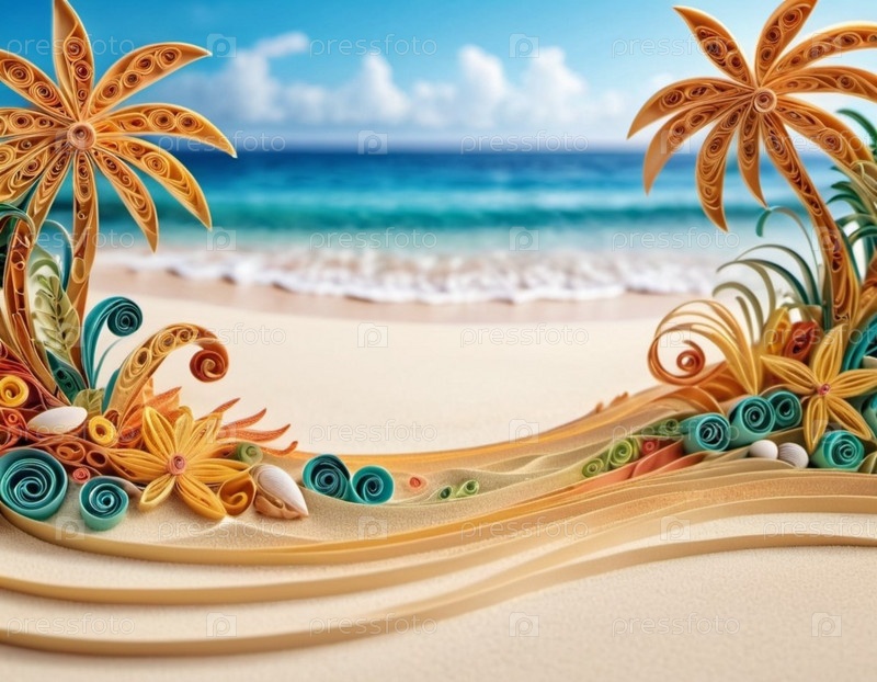 Спокойная пляжная сцена с мягкими волнами, песчаным берегом и пальмами, отбрасывающими тени. Яркие цвета и мягкие мазки создают умиротворяющую атмосферу. Сгенерированный ИИ. Путешествия на солнечном пляже