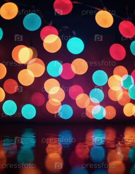 Красочный фон боке с мягким размытым фокусом. Черный передний план. Яркие цвета: синий, розовый, желтый, зеленый и оранжевый. Эффект боке создает мечтательную, праздничную ночную атмосферу. Сгенерировано ИИ