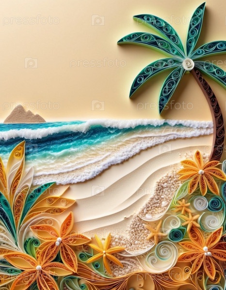 Спокойная пляжная сцена с мягкими волнами, песчаным берегом и пальмами, отбрасывающими тени. Яркие цвета и мягкие мазки создают умиротворяющую атмосферу. Сгенерированный ИИ. Путешествия на солнечном пляже