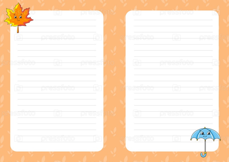Шаблон цветного листа для заметок. Бумажная страница для журнала, блокнота, дневника, писем, расписания, органайзера. Милый персонаж мультфильма. Линованный лист. Векторная иллюстрация