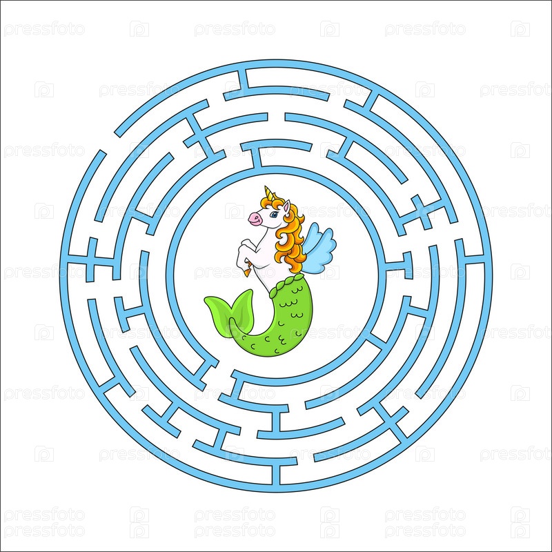 Круговой лабиринт. Игра для детей. Головоломка для детей. Круглая головоломка лабиринта. Цветная векторная иллюстрация. Найдите правильный путь. Рабочий лист по образованию