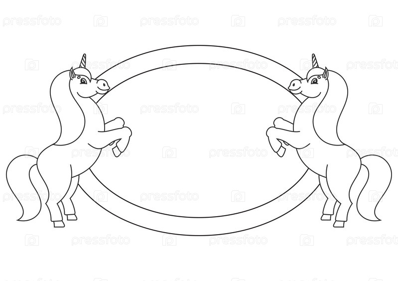 Две лошади встали на дыбы. Раскраска для детей. Волшебный единорог встал на дыбы. Животное-лошадь стоит на задних ногах. Мультяшный стиль. Простая плоская векторная иллюстрация