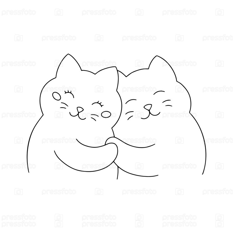Пара кошек. Страница раскраски для детей. Персонаж в мультяшном стиле. Векторная иллюстрация на белом фоне