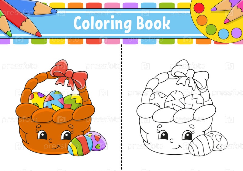 Раскраска для детей. Персонаж мультфильма. Векторная иллюстрация. Пасхальная тема. Черный контурный силуэт. Изолирован на белом фоне