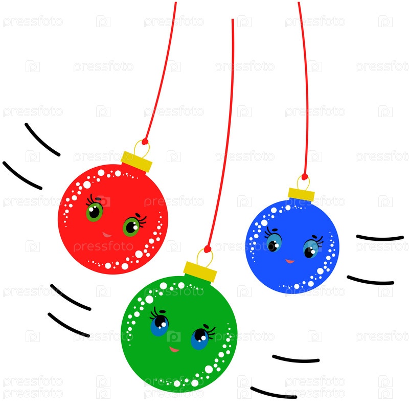 Плоский цветной набор изолированных рождественских игрушек мультяшные шары на тонких веревках. Простая фигурка-помпон