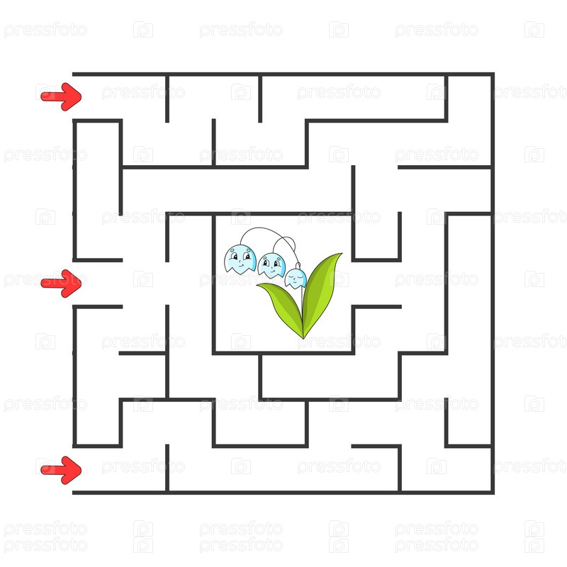 Квадратный лабиринт. Игра для детей. Головоломка для детей. Персонаж мультфильма. Загадка лабиринта. Найди правильный путь. Развитие логического и пространственного мышления. Векторная иллюстрация