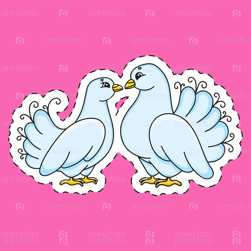 Наклейка с контурным голубем. Персонаж мультфильма. Красочная векторная иллюстрация. Изолирована на цветном фоне. Шаблон для вашего дизайна