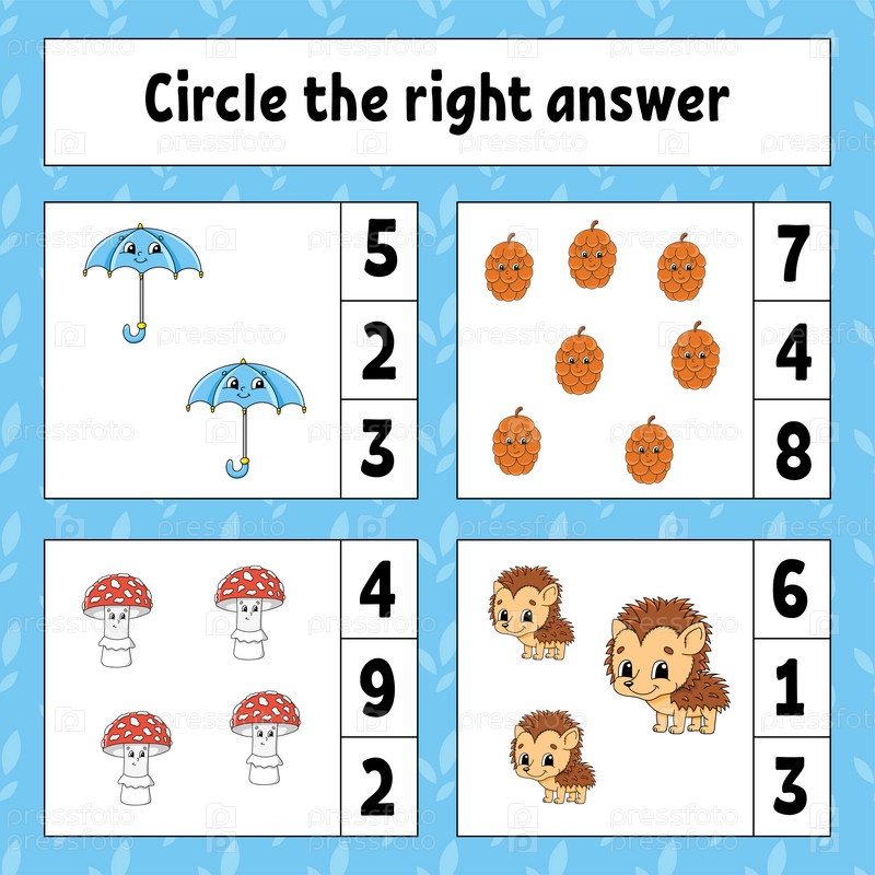 Обведите правильный ответ. Рабочий лист по развитию образования. Страница с заданиями с картинками. Игра для детей. Осенняя тема. Цветная изолированная векторная иллюстрация. Забавный персонаж. Мультяшный стиль