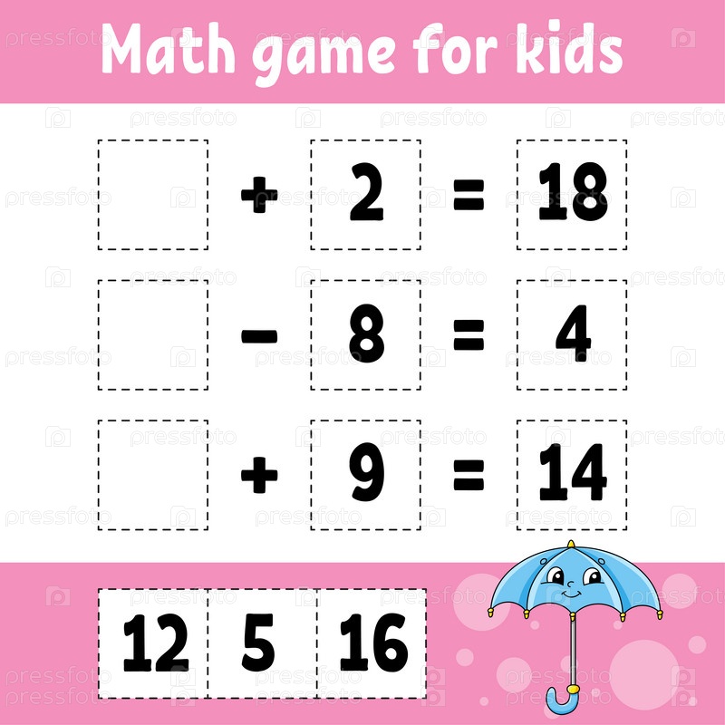Математическая игра для детей. Образовательный развивающий рабочий лист. Страница с заданиями с картинками. Игра для детей. Цветная изолированная векторная иллюстрация. Забавный персонаж. Мультяшный стиль