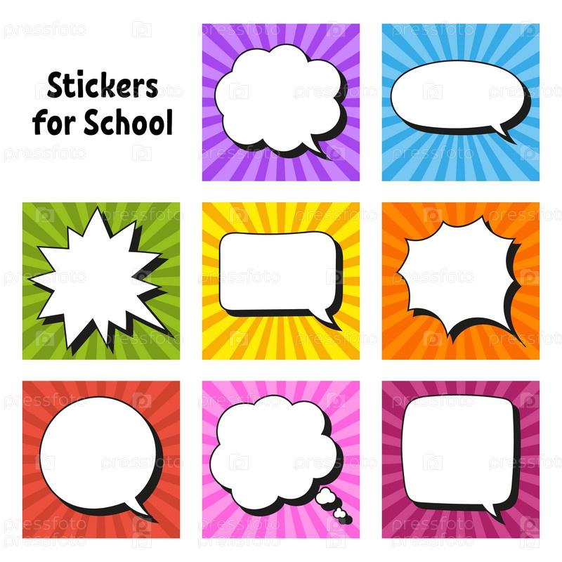 Текстовые пузыри. Яркие наклейки. Комическая облачная этикетка. Цветная векторная изолированная иллюстрация