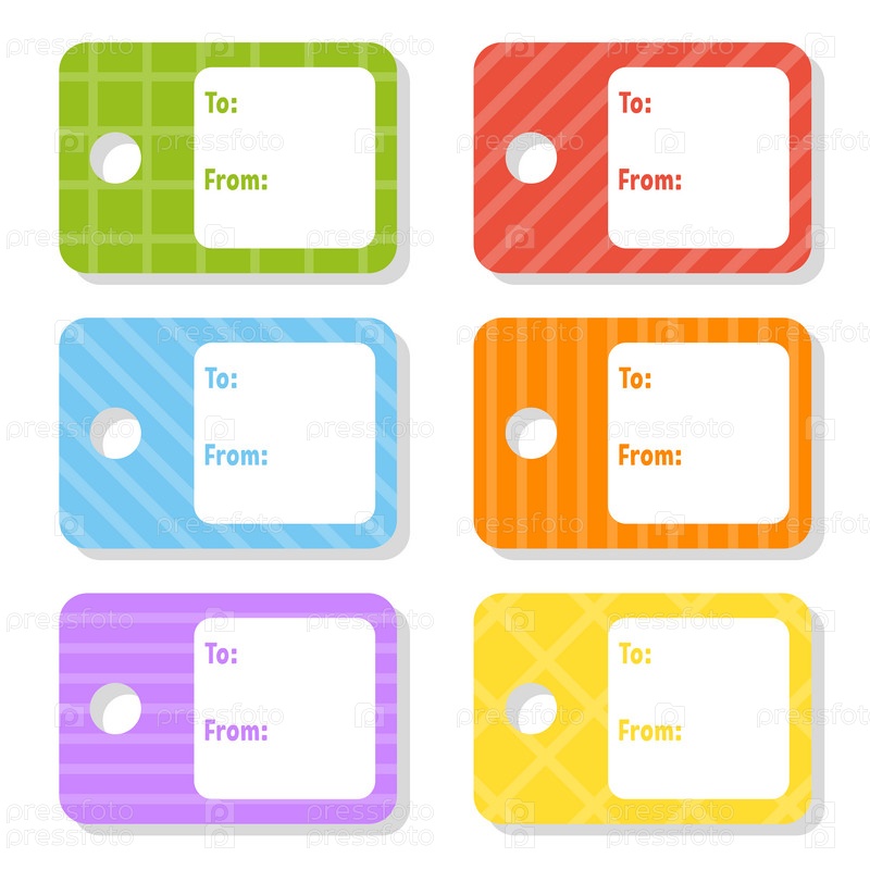Подарочные бирки. Яркие наклейки. Прямоугольная этикетка. Для праздников с местом для вашего текста. Цветная векторная изолированная иллюстрация