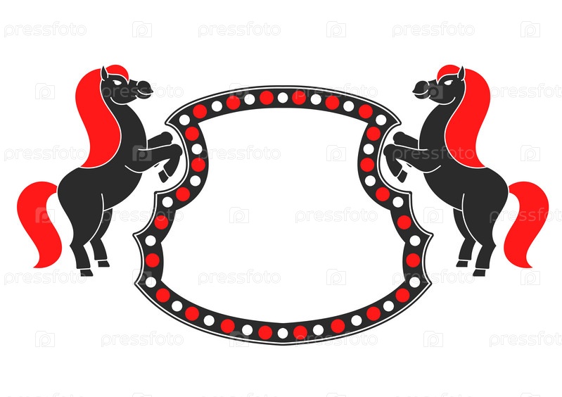 Две лошади встали на дыбы. С местом для вашего текста. Элемент для дизайна этикеток, сайтов. Цветной силуэт. Простая плоская векторная иллюстрация