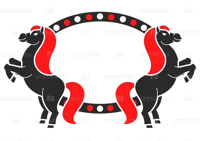 Силуэты вздыбленных лошадей. С местом для вашего текста. Для цирковой рекламы, рекламы. Простая плоская векторная иллюстрация