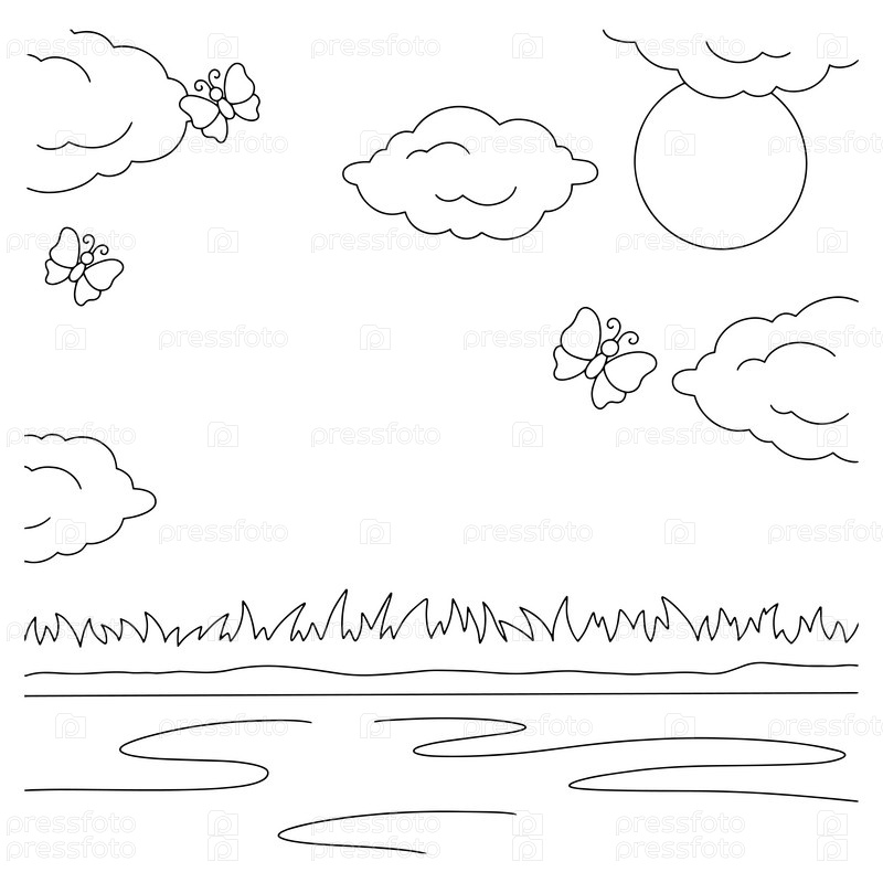 Замечательный природный ландшафт. Раскраска для детей. Мультяшный стиль. Векторная иллюстрация на белом фоне