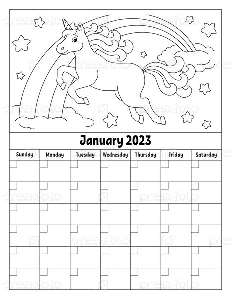Пустой шаблон календаря на один месяц без дат. Красочный дизайн с милым персонажем. Векторная иллюстрация