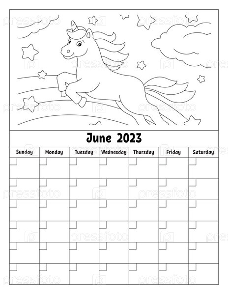 Пустой шаблон календаря на один месяц без дат. Красочный дизайн с милым персонажем. Векторная иллюстрация