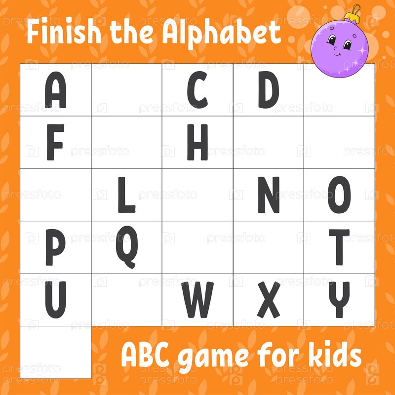 Завершите алфавит. Игра ABC для детей. Образовательный рабочий лист, развивающийся в образовании. Учебная игра для детей. Рождественская тема. Цветовая страница с заданиями