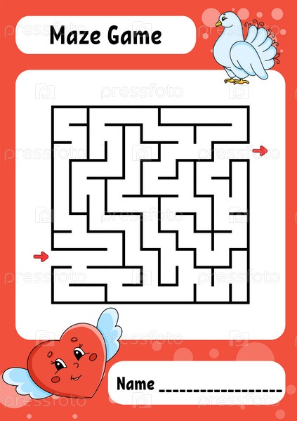 Квадратный лабиринт. Игра для детей. Забавный лабиринт. Образовательный развивающий рабочий лист. Страница с заданиями. Головоломка для детей. День святого Валентина. Загадка для дошкольников. Логическая головоломка. Цветная векторная иллюстрация