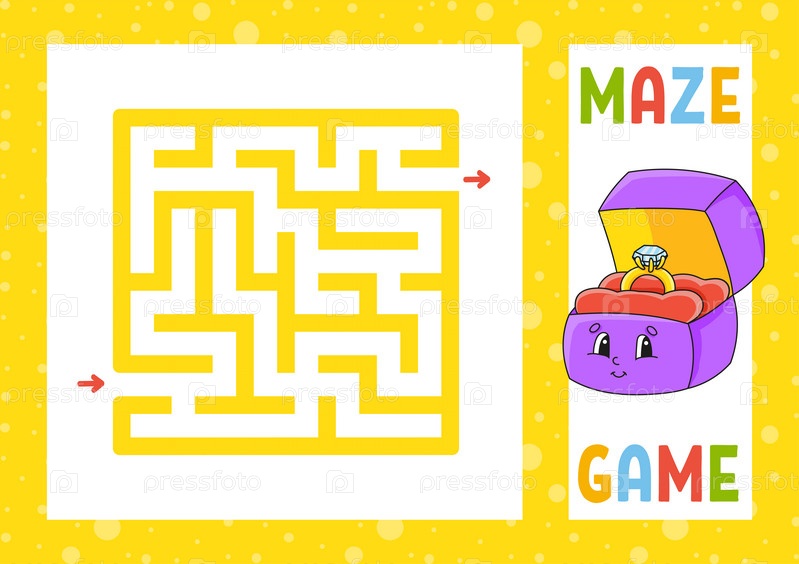 Квадратный лабиринт. Игра для детей. Головоломка для детей. Счастливый персонаж. Головоломка лабиринта. Цветная векторная иллюстрация. Найдите правильный путь. Изолированная векторная иллюстрация. Мультяшный стиль