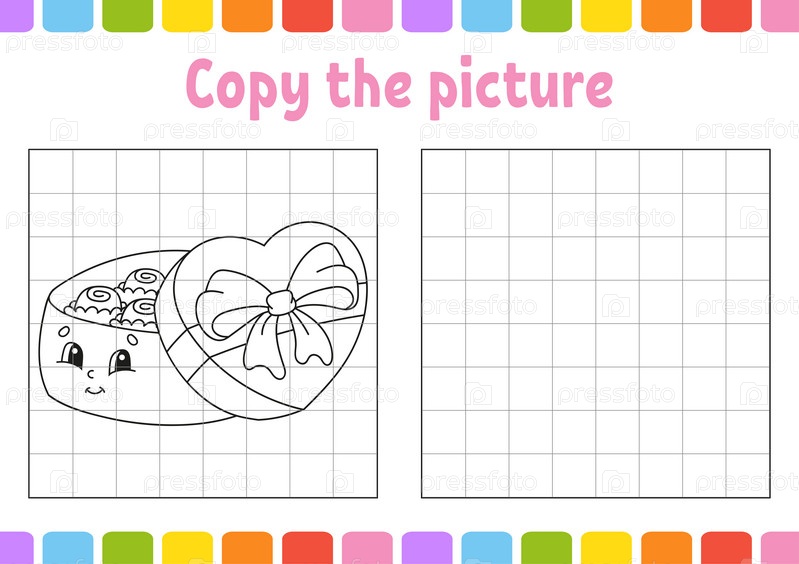 Скопируйте картинку. Страницы раскраски для детей. Образовательный развивающий рабочий лист. Игра для детей. Практика письма. День святого Валентина. Милая мультяшная векторная иллюстрация