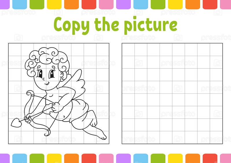 Скопируйте картинку. Страницы раскраски для детей. Образовательный развивающий рабочий лист. Игра для детей. Практика письма. День святого Валентина. Милая мультяшная векторная иллюстрация