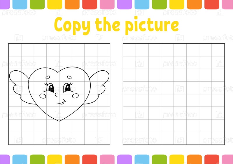 Скопируйте картинку. Страницы раскраски для детей. Образовательный развивающий рабочий лист. Игра для детей. Практика письма. День святого Валентина. Милая мультяшная векторная иллюстрация