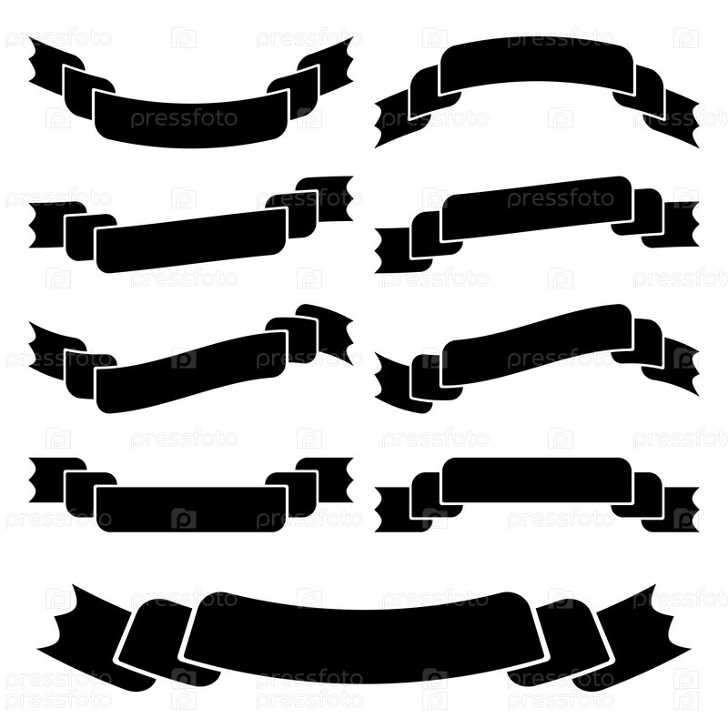 Набор плоских черных изолированных силуэтов лент-баннеров на белом фоне