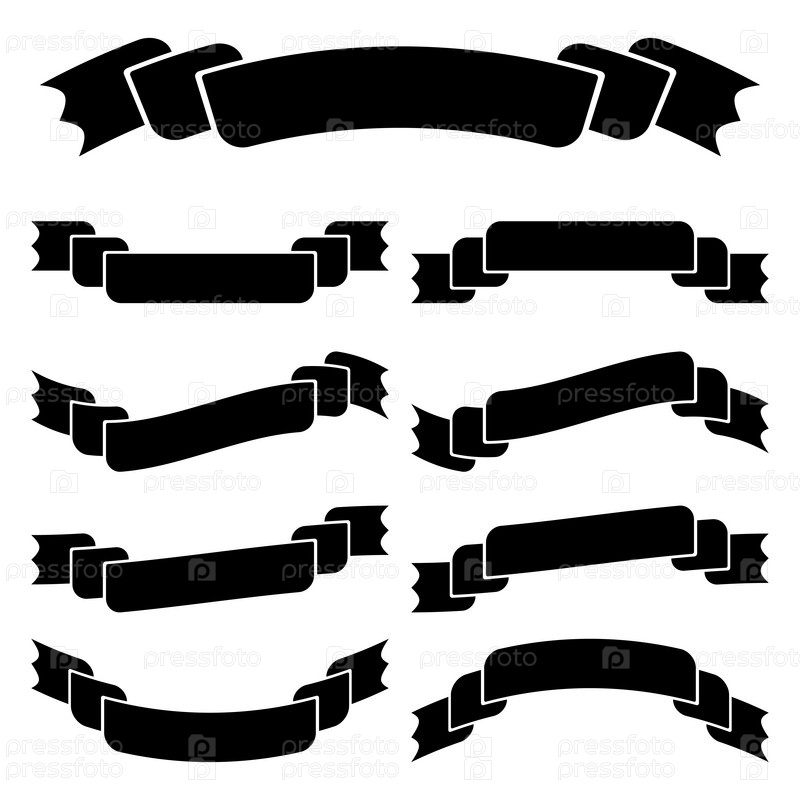 Набор плоских черных изолированных силуэтов лент-баннеров на белом фоне