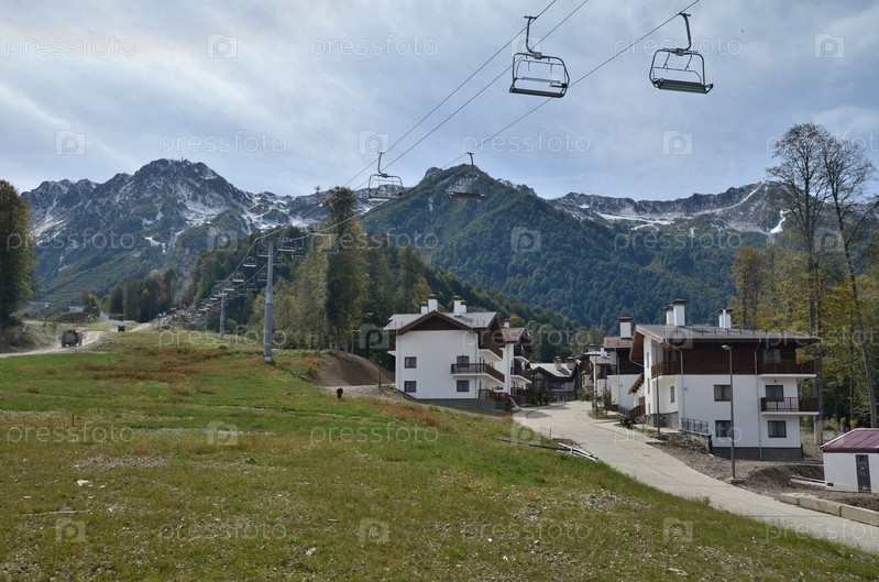 Вид на набережную реки Мцеста, Красная Поляна, Сочи, Россия